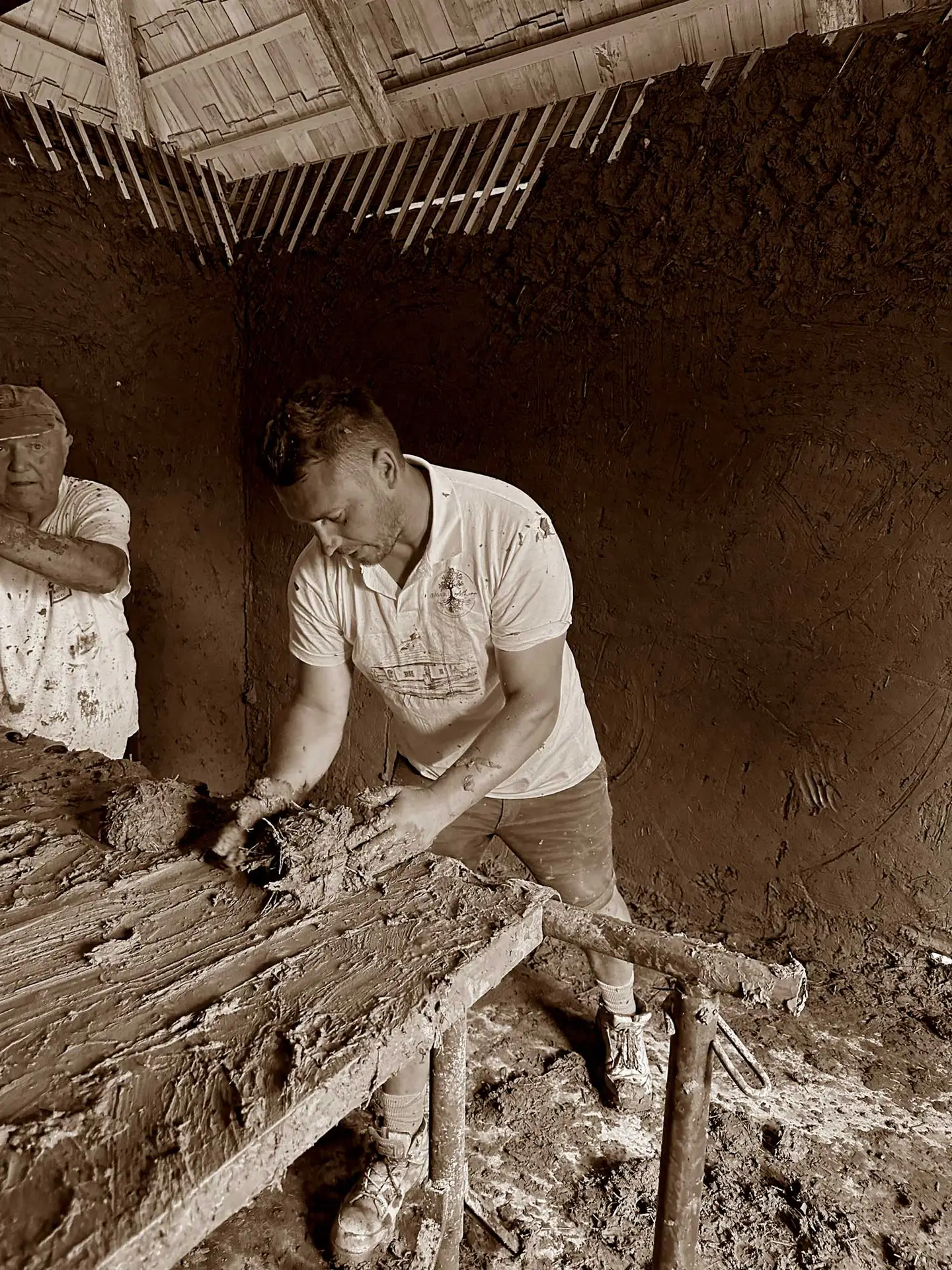Deja s-a finalizat si faza doi, si anume asamblarea surei. Am avut noroc ca am gasit un lemn de ulm foarte sanatos cu o vechime de peste 90 de ani. El provine dintr-o veche casa boiereasca din Targul Lapus. Sura “Lacasul Prieteniei” va fi construita intr-o combinatie de doua stiluri, cu design si elemente maramuresene si bucovinene, intr-o simbioza moderna.